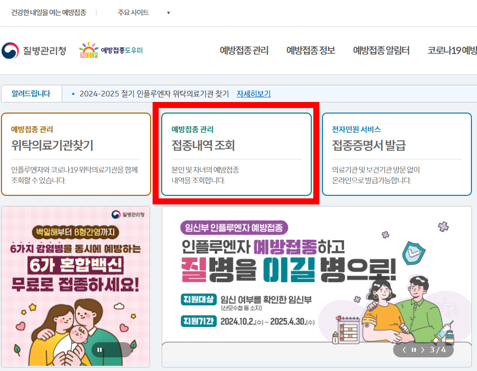 - 예방접종도우미 홈페이지에서 본인의 예방접종 이력 조회