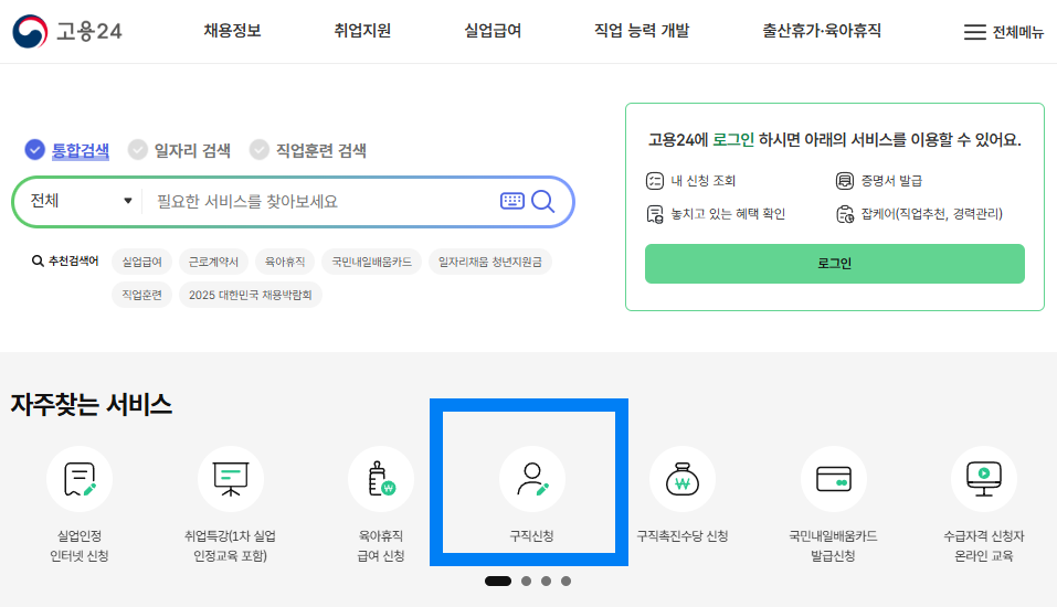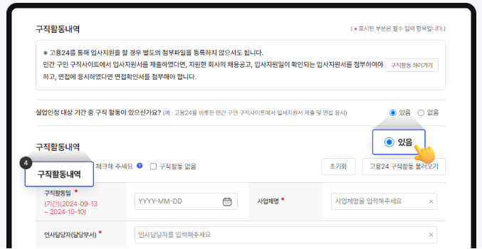 ✔ 구직 신청 및 희망 직종, 경력 사항 입력