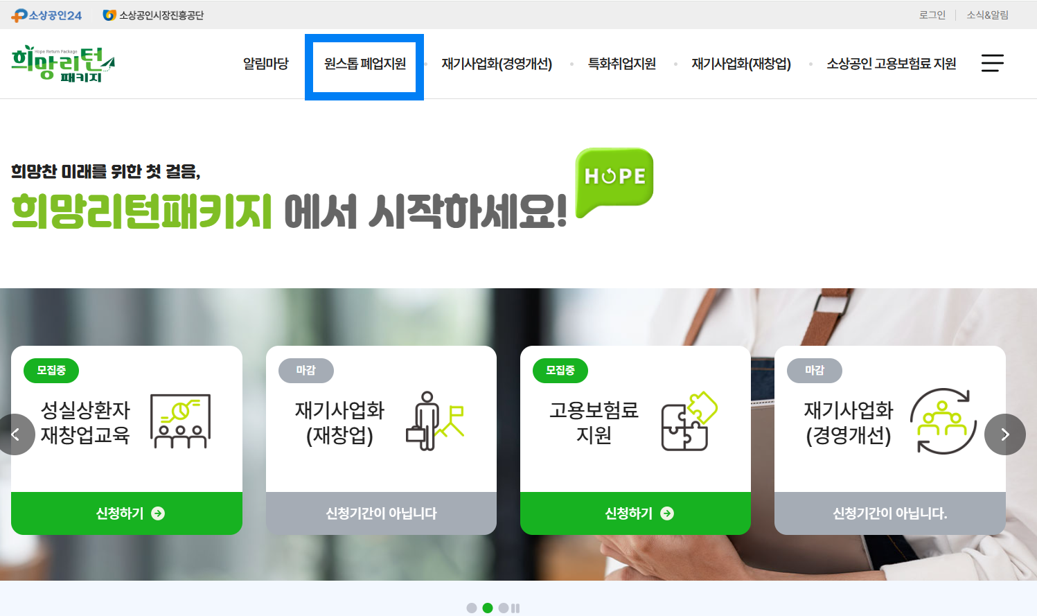 - 희망리턴패키지 홈페이지 접속