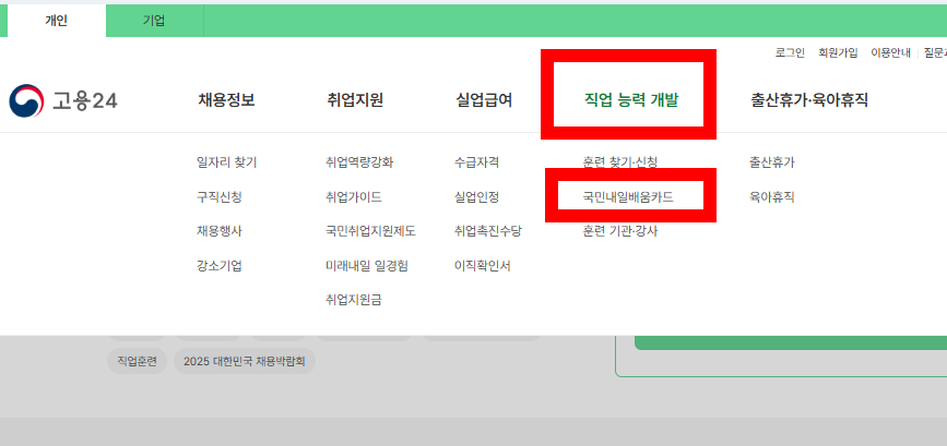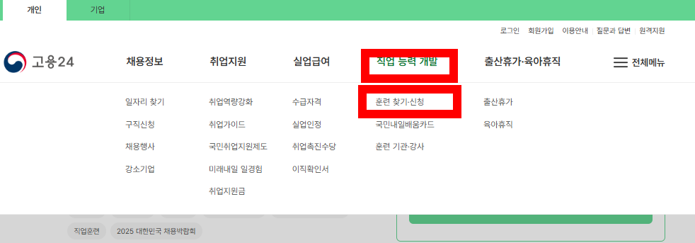 2. 국민내일배움카드 발급 후 고용24에서 훈련 검색(산후관리사)