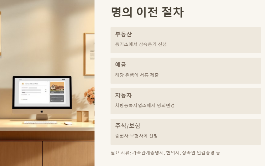 ✅ 5단계: 명의 이전 (부동산·예금·차량 등)