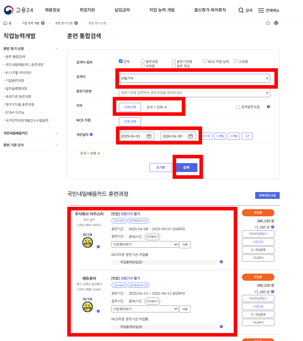 - 고용24에서 국민내일배움카드로 산림기사 강의 무료 수강 가능