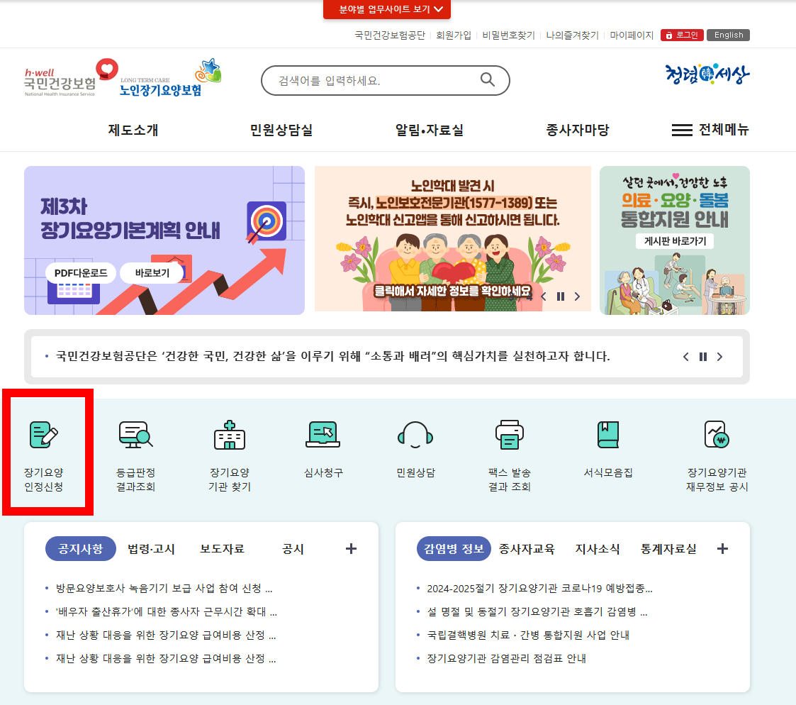 - 국민건강보험공단 홈페이지에서 장기요양등급 신청