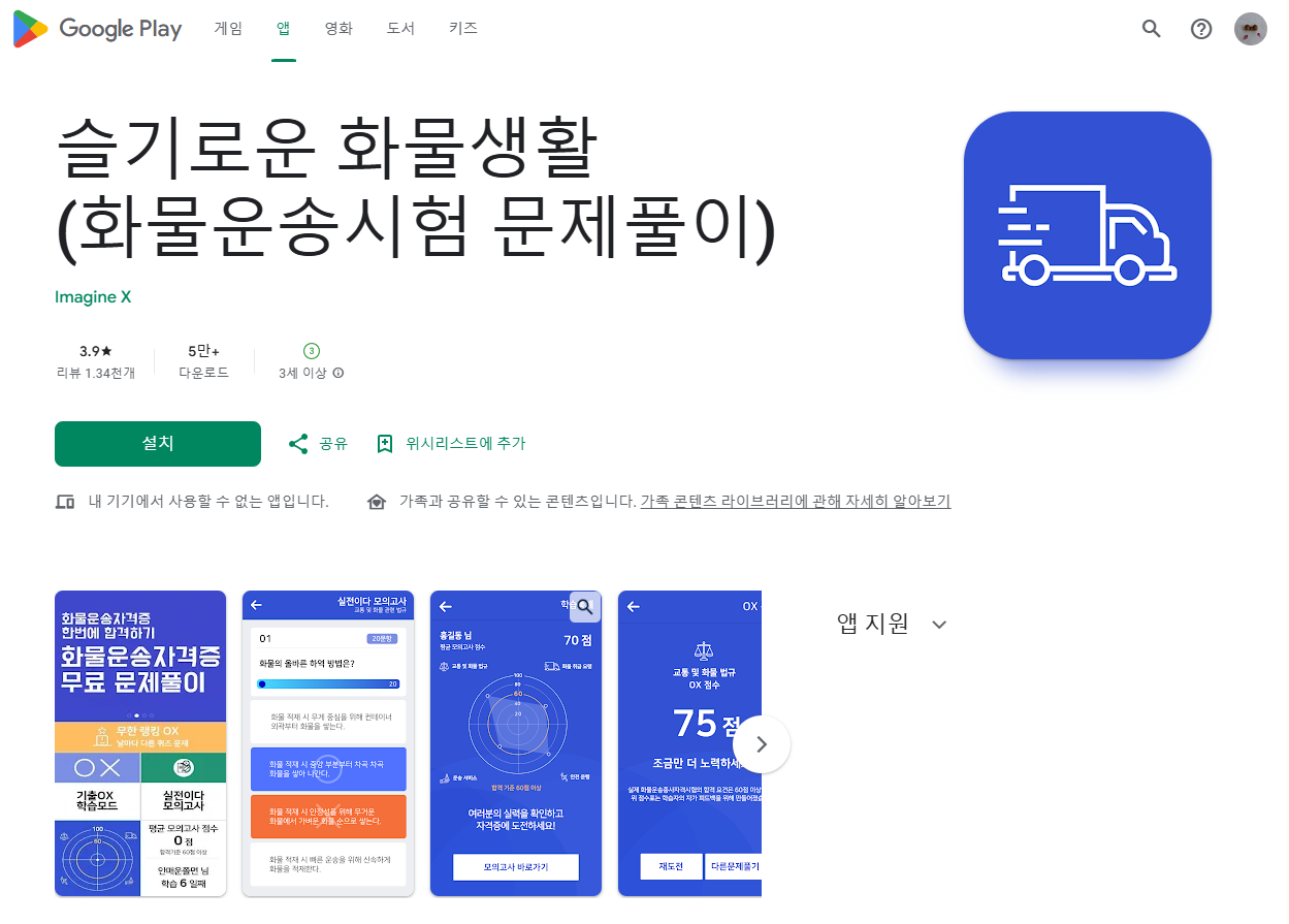'슬기로운 화물생활' 앱은 자격시험 문제를 무료로 제공하는 앱입니다.
