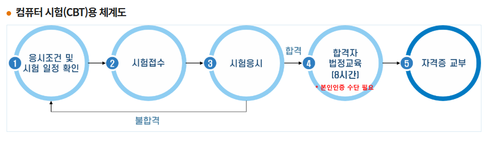 👉 시험 응시 후 결과는 당일 확인 가능하며, 합격자는 8시간 법정 교육 이수 후 자격증 발급됩니다.