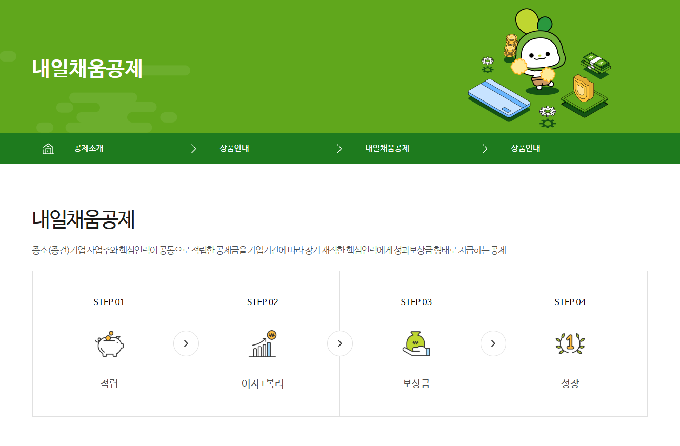 - 청년 또는 기업 대표자/담당자가 내일채움공제 홈페이지에서 신청 가능