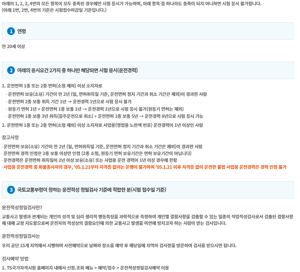 | 운전경력 | 최근 2년간 1년 이상 또는 전체 1년 6개월 이상 운전 경력 |