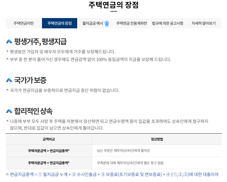 즉, 개인이 연금을 수령하다가 예상보다 오래 살거나, 주택 가격이 하락하더라도 연금 지급에는 전혀 영향이 없습니다.