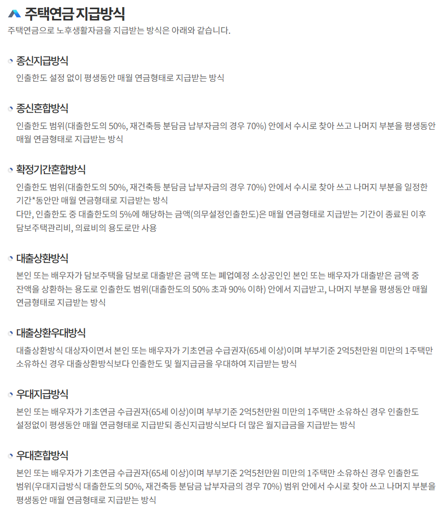 | 종신형 | 평생 매달 고정 금액 수령 | 가장 일반적인 방식 |