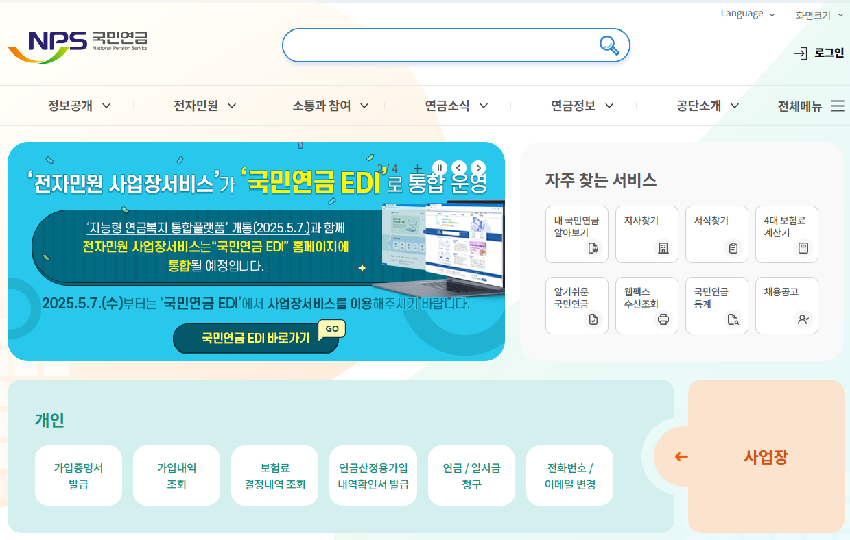 - 국민연금공단 홈페이지 접속하여 바로 확인 가능