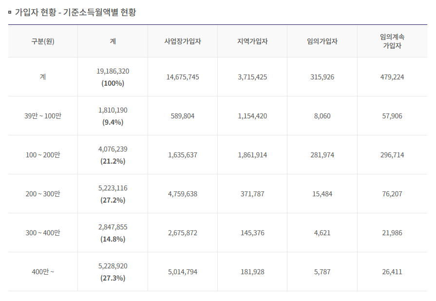 - 고소득자의 경우 보험료가 많고, 이에 따라 향후 수령액도 커집니다.