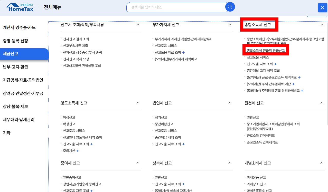- 로그인 → My홈택스 → 종합소득세 원클릭 환급금 조회
