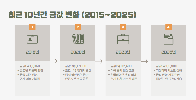 ✅ 최근 10년간 금값 변화 (2015~2025)