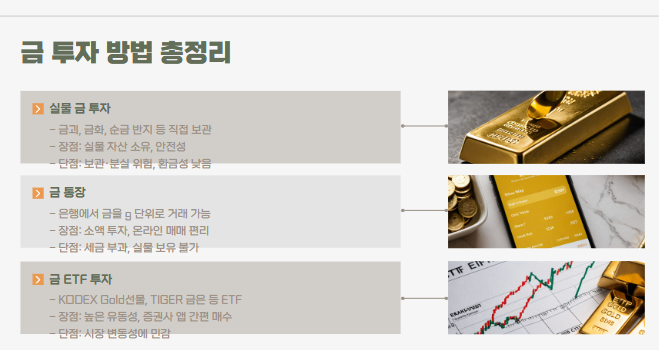 금은 투자 방식도 다양해서 개인의 투자 성향에 맞게 선택할 수 있습니다.