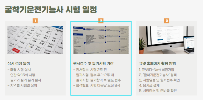 굴착기운전기능사 시험은 상시 검정으로 매달 진행되며 자세한 시험일정은 큐넷 홈페이지에서 확인하시기 바랍니다.