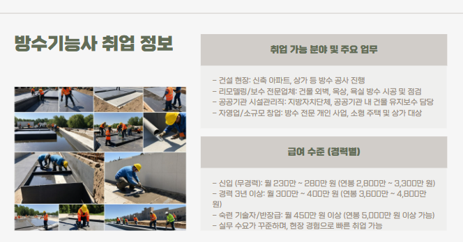 ✅ 방수기능사 취득 후 취업 가능 분야
