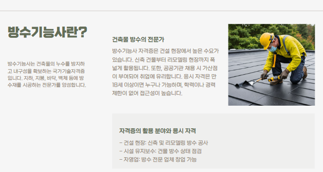 ✅ 방수기능사 자격증, 어디에 쓰이나요?
